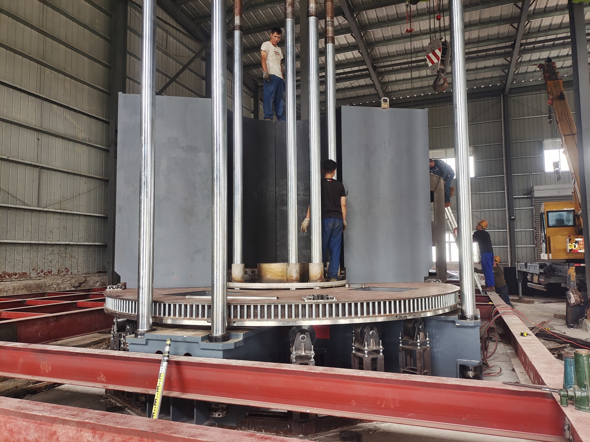 项目描述:中晶环境的污泥干化设备,在污泥干化工艺过程中,需要将污泥注入沥水篮,高精度工位转台需携带沥水篮转运四个工位,实现注泥-一级脱水-二级脱水-干化后脱出的四个工艺流程;成套设备具有立式压榨占地省、两级压榨压力大、滤框流转效率高、薄层布泥易出水、模块集成易安装等优势。